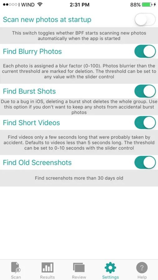 Blurry Photo Finder was written to solve a problem that most of us have encountered at one time or another. You're at an important event or on vacation and you try to take a photo, but the memory on your phone is full. You don't have time to manually search through all of your photos looking for bad ones to delete. In a matter of seconds, BPF can scan through all of your photos to automatically locate blurry, and accidentally repeated (burst mode) images as well as accidental videos. What makes BPF special is its unique ability to scan hundreds of photos in a few seconds to automatically locate the ones you want to eliminate. With just a couple of taps, you can trust BPF to find and remove your unwanted media and get back to capturing the moment.