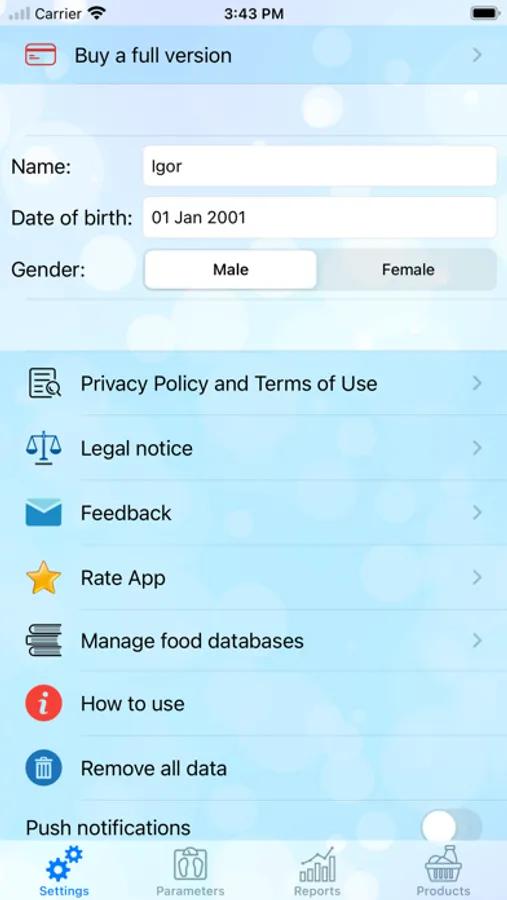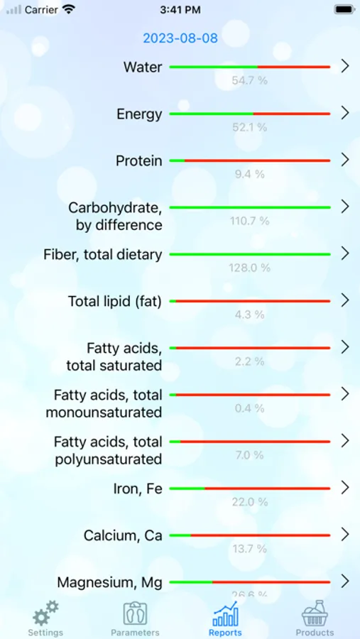 The app allows you to track the amount of incoming nutrients and identify their excess or deficiency in time.