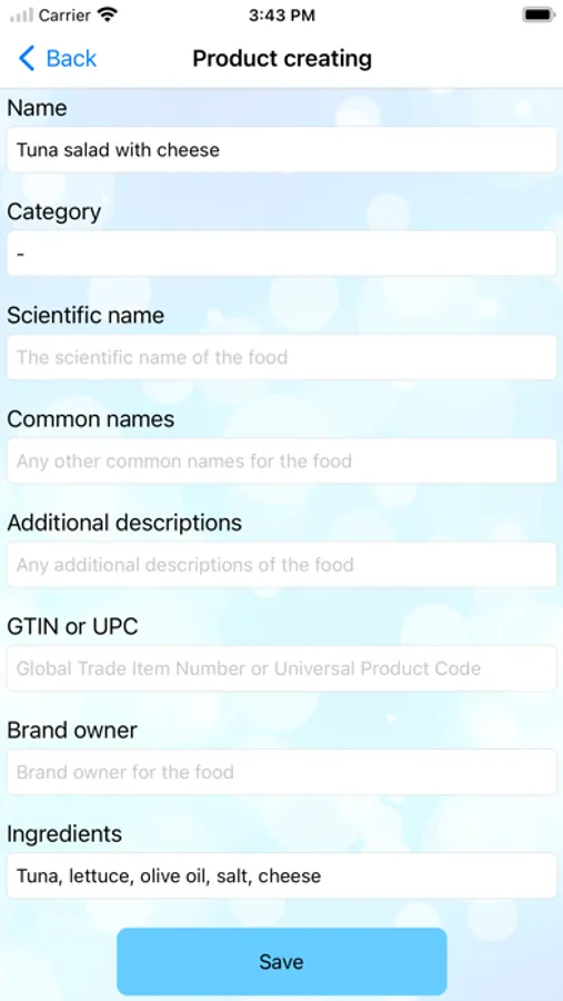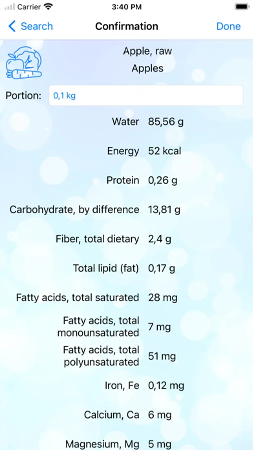 The database contains information on more than 17 000 products, coming from authorized international organisations for example "U.S. DEPARTMENT OF AGRICULTURE". There is also an option for users to update and increase it themselves.
