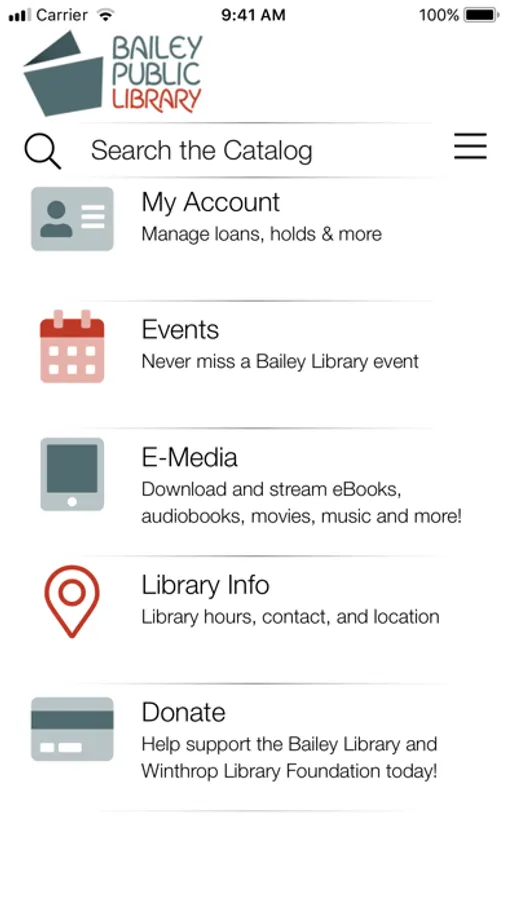 Stay connected with the Bailey Public Library 24/7. Search the catalog, place items on hold, access digital content, view event listings, manage your account, contact staff and more!