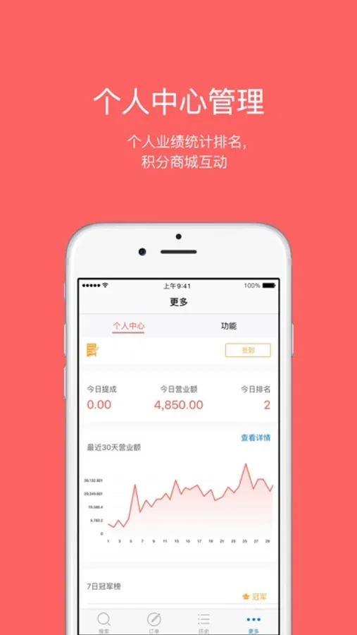 5.个人业绩统计、积分商城活动等功能为员工提供更多参与感,让管理更高效。