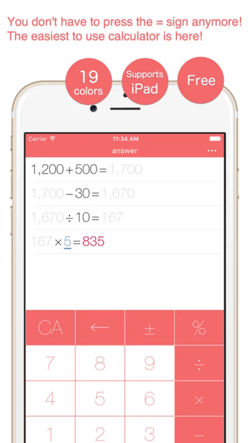 ・This app has no “=“ button. As it calculate as you type, you know the answer immediately.