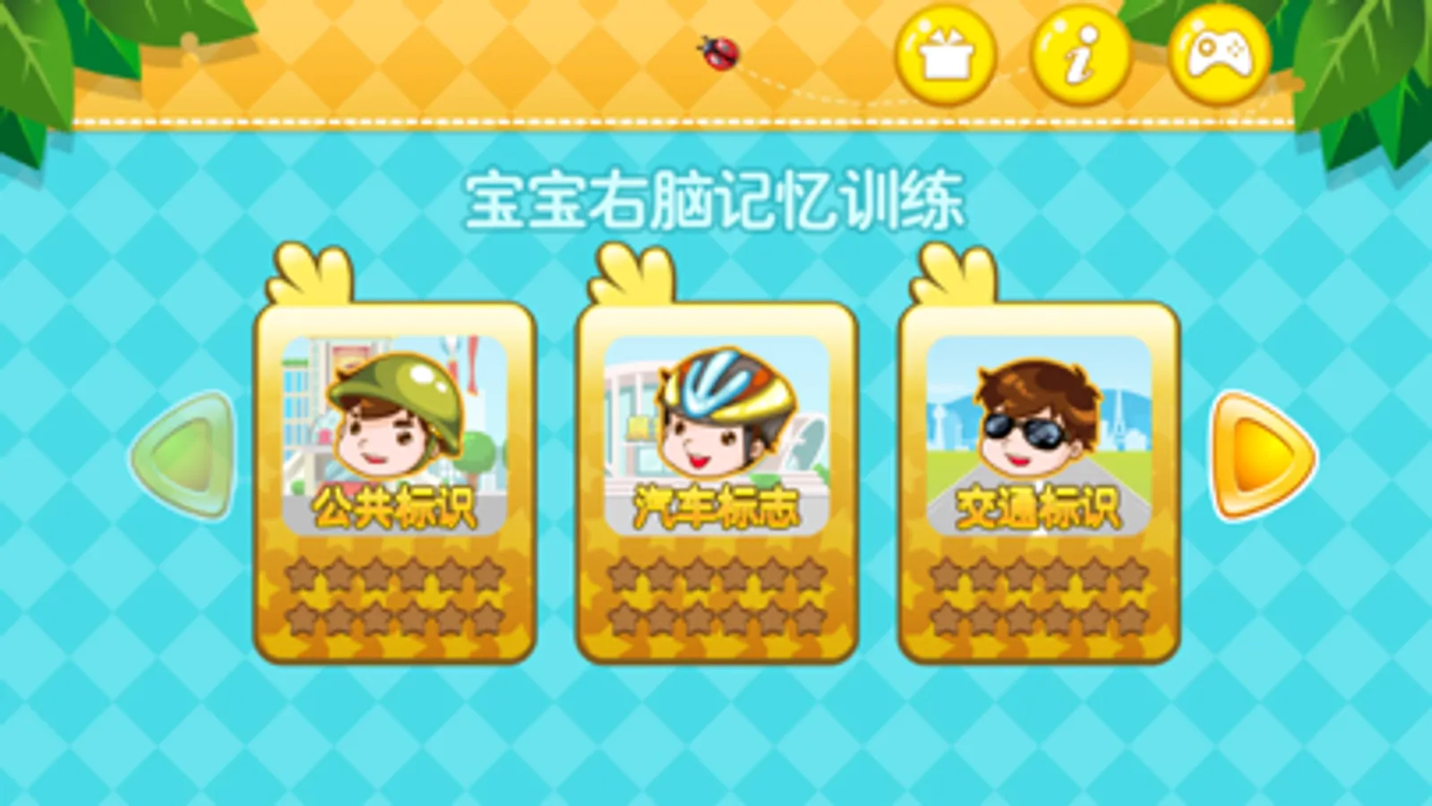 本期记忆训练是我们右脑训练体系中的的一个小应用。共设4个部分,每个部分认识12个标识。希望爸爸妈妈通过这种训练,提高宝宝右脑瞬间记忆的能力,为宝宝右脑开发打下基础。