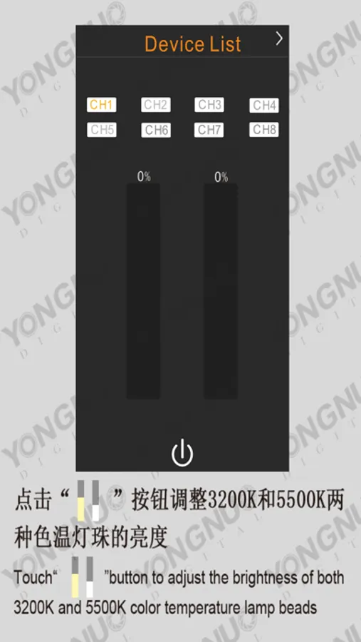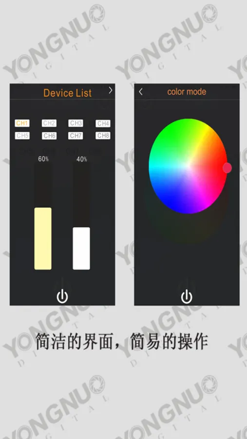 This app is used cooperatively with YONGNUO YN360 Video light,via Bluetooth from mobile phone,it connects YN360 Video light to achieve the function of remote control for the brightness and power switch.