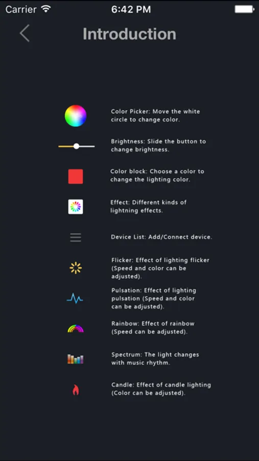 4. camera mode (light changes according to color picked by camera, only for RGB products).