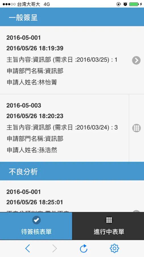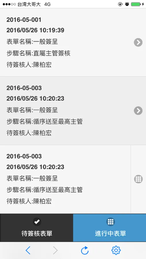 2.取得該帳號的待簽核表單及進行中表單列表;
