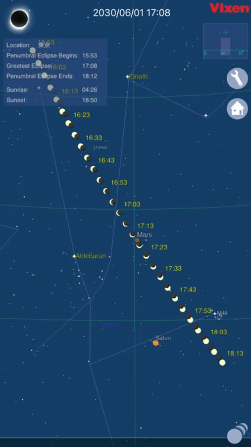 Solar eclipses can be displayed by designating the date of a solar eclipse in the past or the future if you cannot find it in a list of the selection.