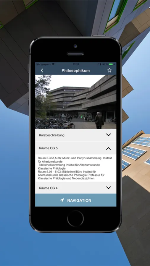 Die Uni Köln Navi on Campus App bringt Dich zum Ziel! Mit der App kannst Du Dich auf dem Campus orientieren und findest immer das richtige Gebäude. Zusätzlich bekommst Du jederzeit aktuelle Informationen aus der Uni direkt auf Dein Smartphone.