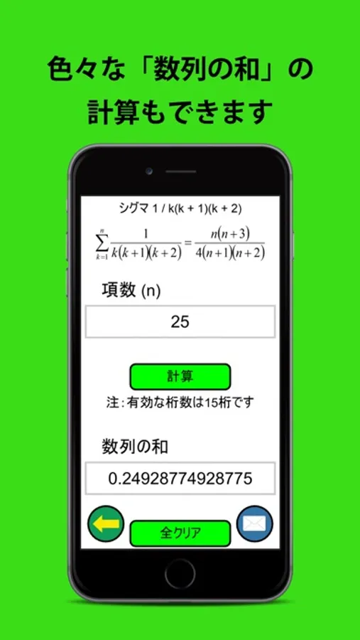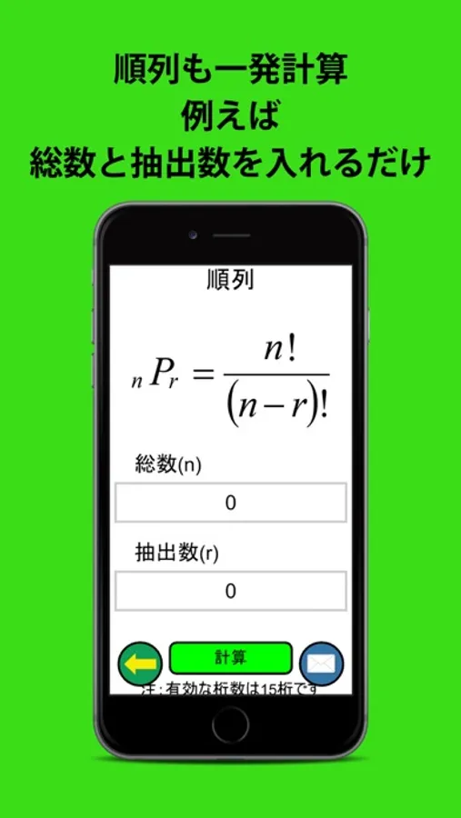 「数列・順列・組み合わせ計算機」はいろいろな数列、順列、組み合わせの計算を行う計算機です。普通の電卓としての機能はありません。簡単に等差数列の和などを計算することができます。わざわざ公式に値を入れながら計算するのが面倒、なんてときに便利な計算機です。アプリ内では一部ではありますが、公式も載せています。