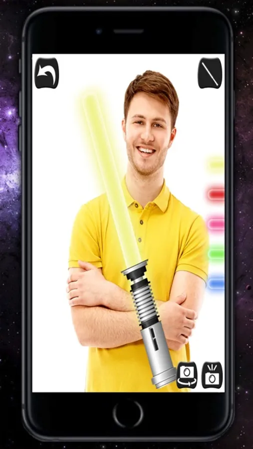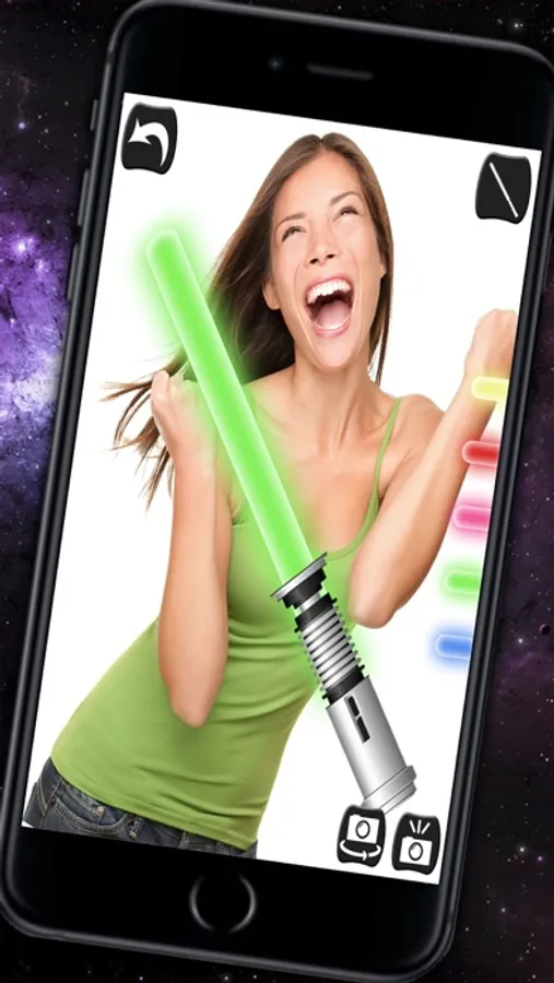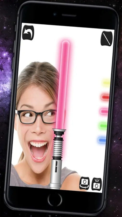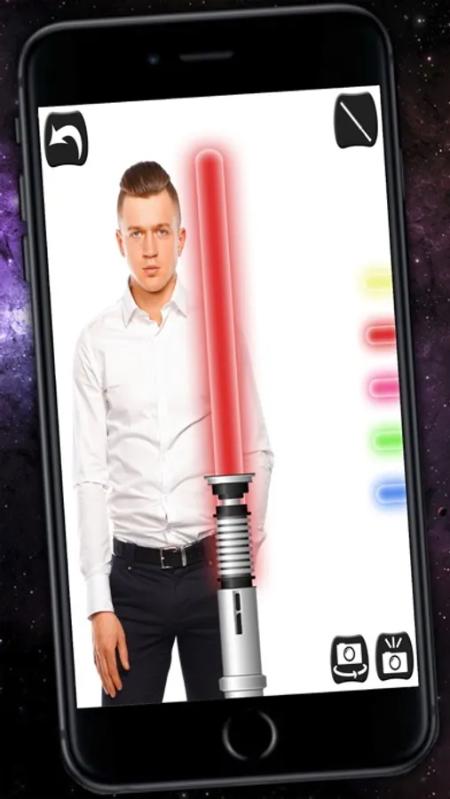 Customize your laser swords with this app and be the fastest of the galaxy to fight the war. You can also use it to take a selfie or ask you friends to take a photo of you with the lightsabers that we provide you with the posture holding a laser saber as a real Jedi fighter!