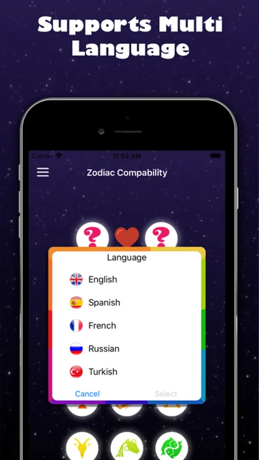 5 different language as English, French, Spanish, Russian and Turkish for all world.