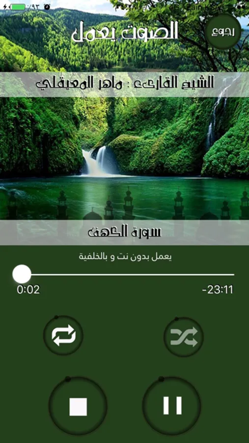 يحتوي هذا التطبيق على سورة الفاتحة و البقرة و الكهف و الملك المسموعه وسورة الكهف و الملك المقرؤه و دعاء القنوت للشيخ القارىء ماهر المعيقلي ويعمل بدون نت وبالخلفية و عداد للتسبيح واذكار الصباح والمساء و الصلاة والسفر.