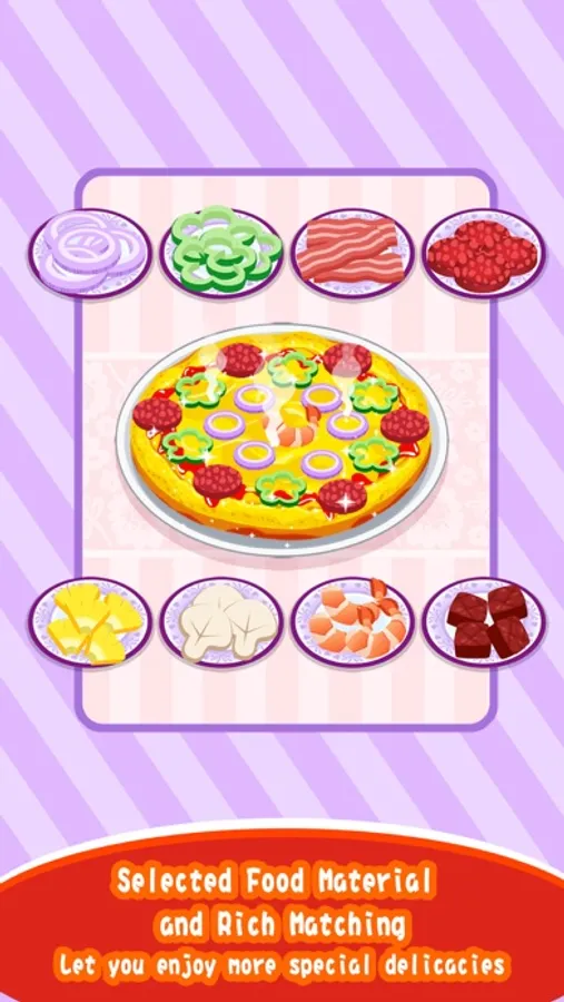 To become a professional pizza chef, in their own home making exquisite pizza, first to leveling material. Then according to the prompt will need kitchenware placed on the desktop, mixing, cream, spoon, used a lot of things Oh, after carefully made delicious pizza, has appetite very much Oh!