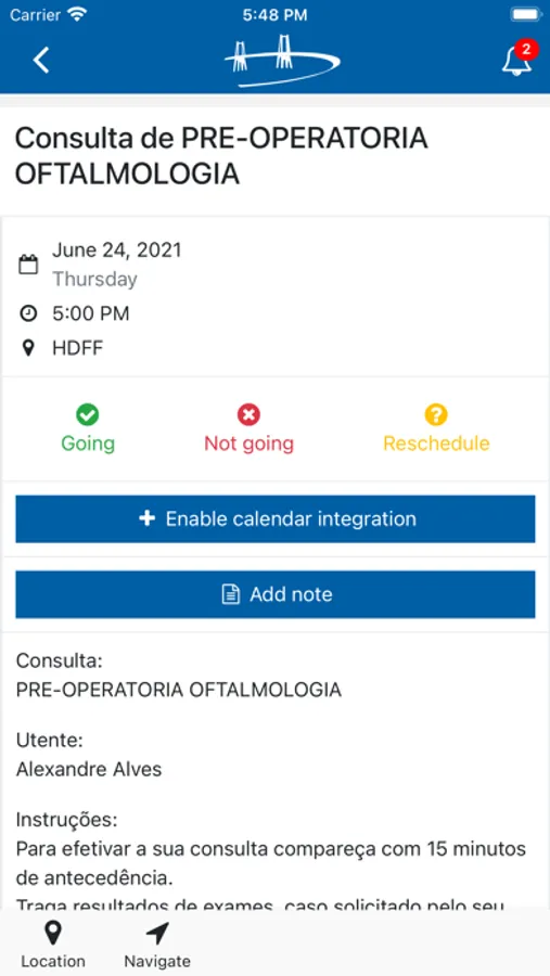 Com esta App poderá receber notificações relevantes sobre as suas consultas e exames agendados no hospital.