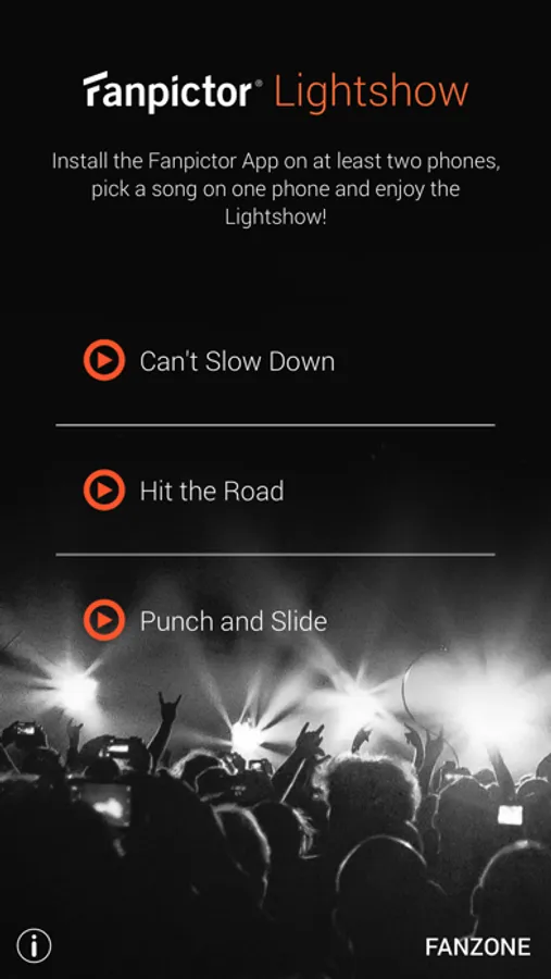 3. One of you can pick a song and all phones combine to a stunning Fanpictor Lightshow