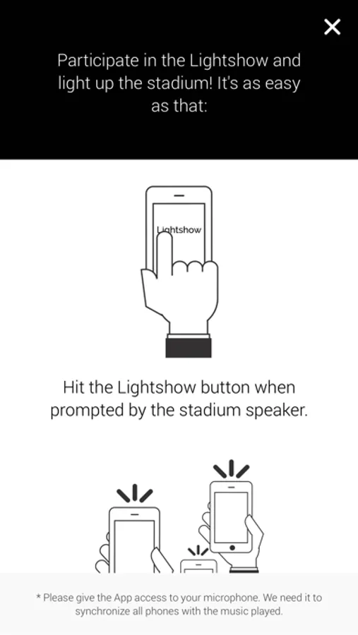 Make sure to allow the App to access your microphone in order to participate in the Lightshow!