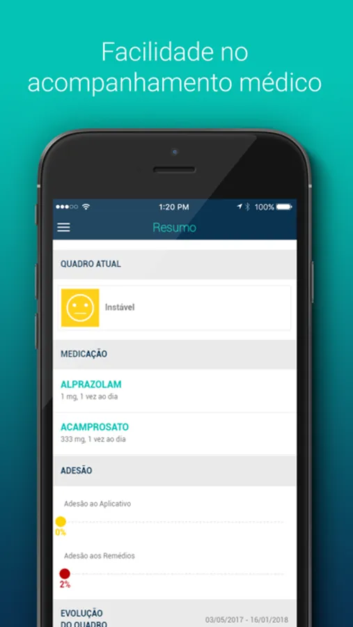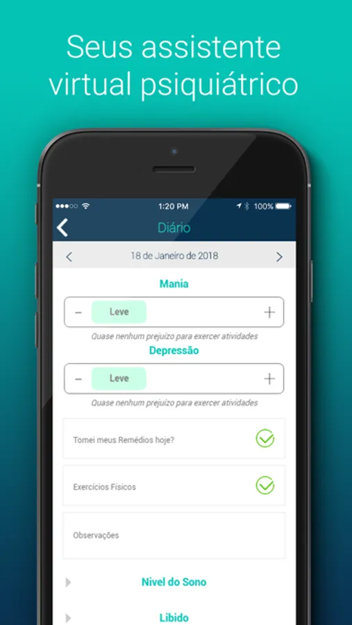 It has a diary where you inform all the feelings and activities that were carried out during the day and with that a moodchart identifies all the changes of humor throughout the treatment. With these data the doctor can better dosage the medications.