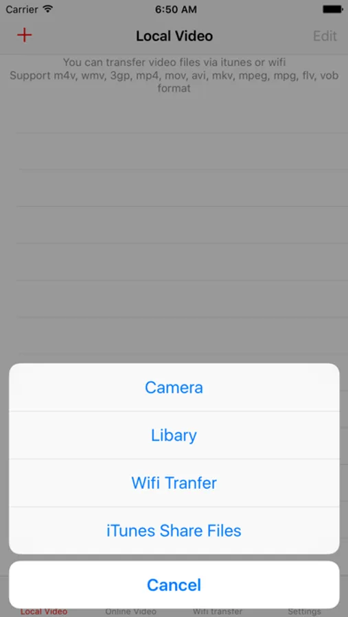 + You can transfer video files via itunes or wifi