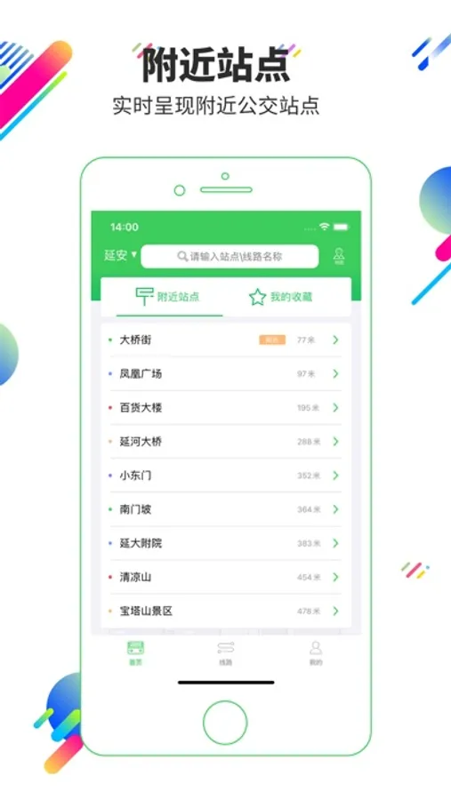 • 附近站点:自动定位当前位置。呈现你附近站点和线路信息。