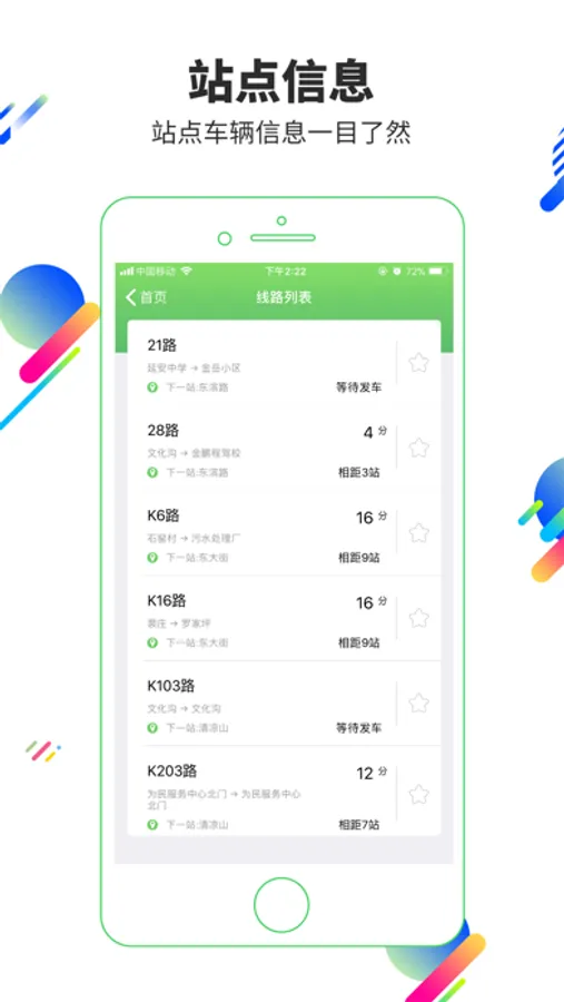 • 线路详情:距离当前站点,还有几站、还有多长时间让你尽在掌握之中。