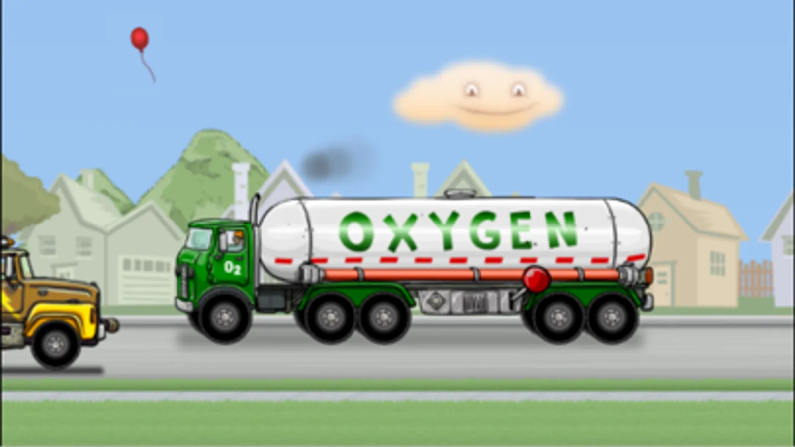 Ride along on an Oxygen Tanker Truck as it stops to deliver Oxygen. First refill your truck at the Oxygen Storage Facility. Then visit submarine ports to fill up Oxygen tanks on submarines, space ports to fill up Oxygen tanks on spaceships, and Train depots to fill up Oxygen tanker cars! Connect the hose to the truck and to each new vehicle to pump the Oxygen until the tank is full. Then launch each vehicle on its way! When the the truck is empty it’s time to go back to the Oxygen Storage Facility to get more Oxygen!