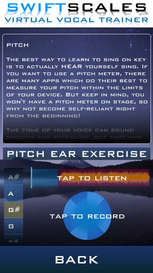Whether beginner or master, student or teacher, SWIFTSCALES grants a lifetime of ever evolving vocal training. Singers, this is the app you've been waiting for!