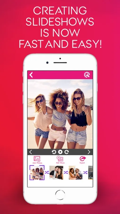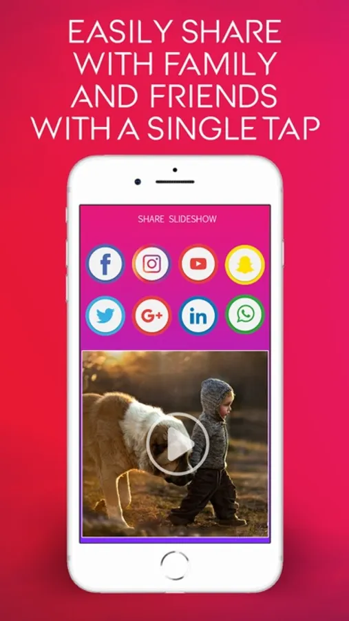 It's so fast and easy to use! Stop spending hours making a slideshow when you can do it in just a couple of minutes! When your done, share your slideshow with the world with just a single tap! See below for all included features.