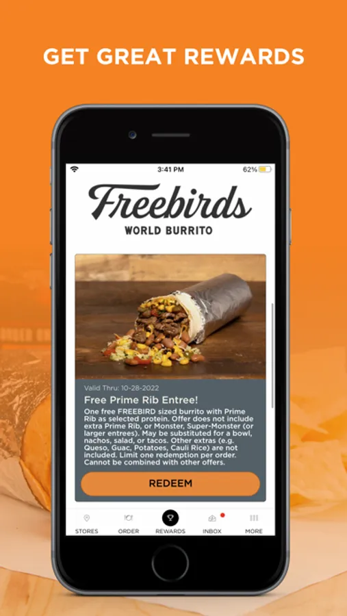 Earn reward points with every purchase with the Freebirds App. Find the closest location, order through the app and start earning rewards today!