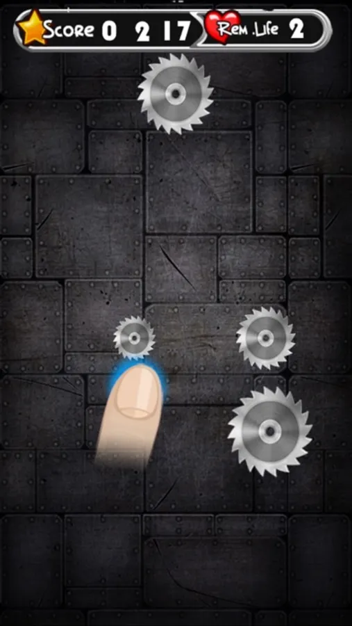 Simply place your finger in the middle and the blades start to move. They are guided by the scent of your finger. They need your finger, they love your BLOOD. You can remove your finger as soon as blades comes near you, but if you do this more than 3 times, you'll lose. The longer you Survive from those blades the higher you score. Remove your finger too early then the game ends. Timing is essential.