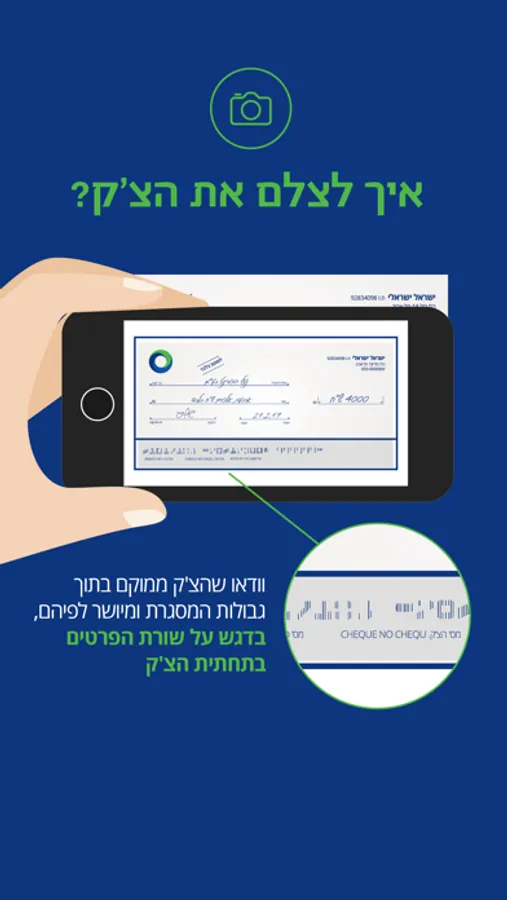 - דיווח על צ'קים חוזרים באמצעות ממשק צילום נוח למשתמש