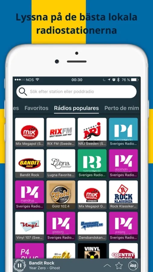 Lyssna på över 100 radiostationer i Sverige: Sveriges Radio P1, P2, P3, P4, P5 STHLM, Mix Megapol, Rix FM, Bandit Rock, NRJ Sweden, Lugna Favoriter, Radio 107.5, Guld Kanalen, Vinyl 107, Rock Klassiker, ...