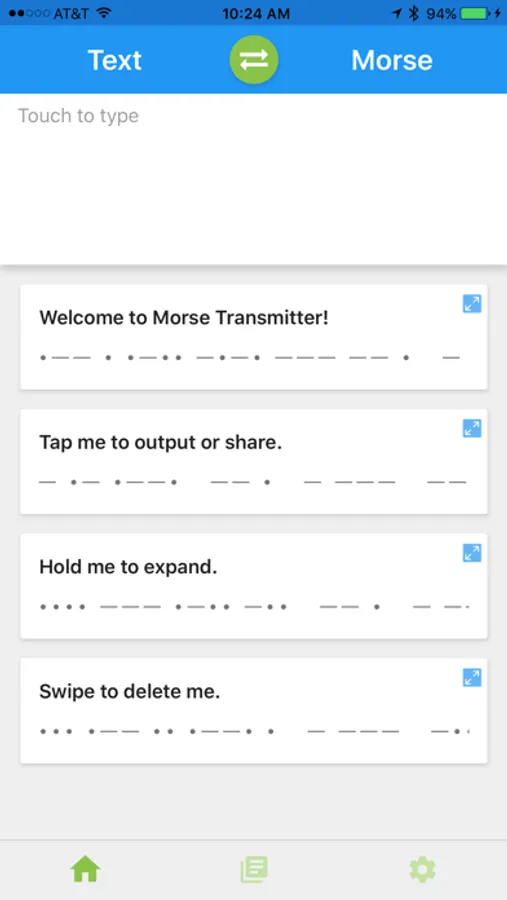 • Output Morse code using screen, speaker and flash!
