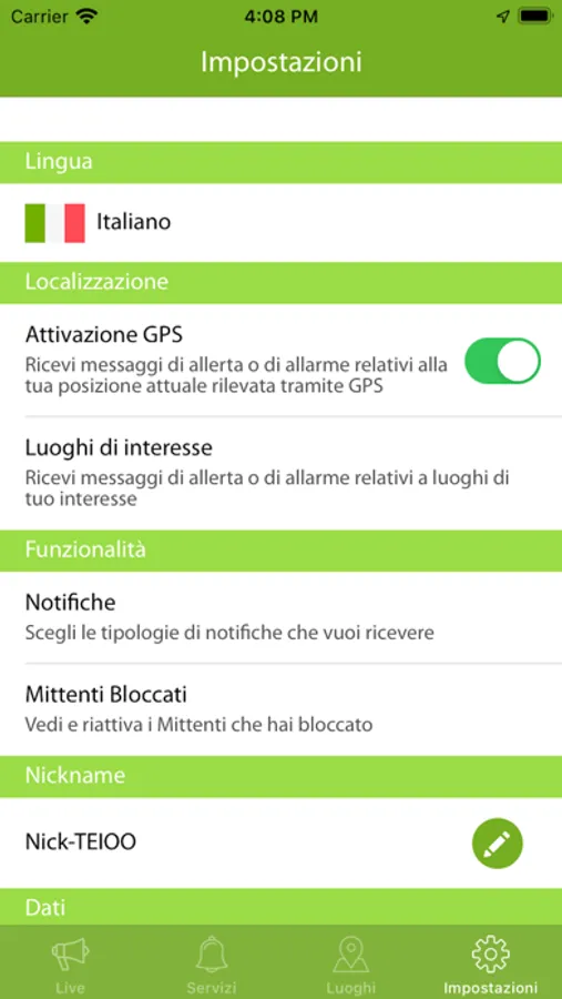 Nota : L' applicazione può utilizzare la posizione anche quando non è aperta. Questo può ridurre sensibilmente la durata della batteria.
