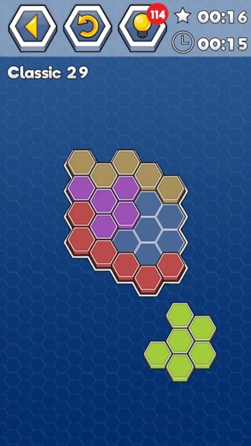 Color Fill Hexa is the new installment in the Color Fill series. It mixes classic Tangram and block puzzle gameplay with colorful hexagonal pieces. Just drag the pieces into the board to fill it and complete the level. With more than 1000 free levels in 4 categories you will have fun for many hours. Relax, have fun and let time flow like water through pipes in this hexagonal and zen puzzler.