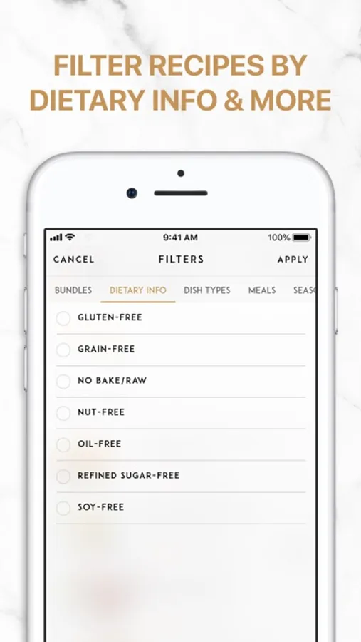 • Filter your recipes based on dietary/allergy info, season, dish type, and more