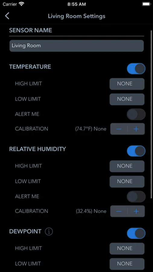 You can easily set the optimal range for any situation, whether it's a greenhouse or your guitar. Then when your iOS device is within range of the sensor (300+ feet line of sight), it will be continuously monitoring conditions.
