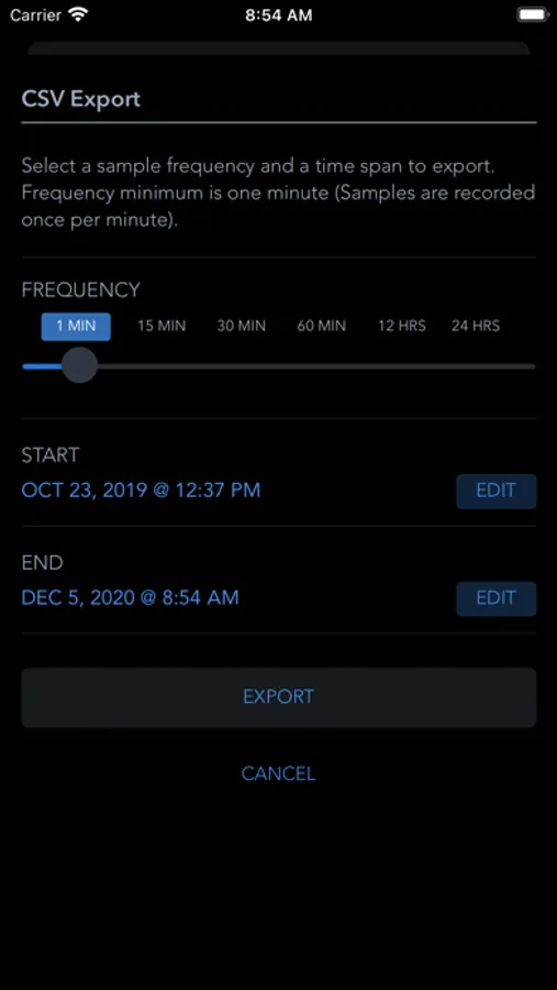 Love data? Export your entire history to CSV for analysis with Numbers, Excel or virtually any spreadsheet or data application.
