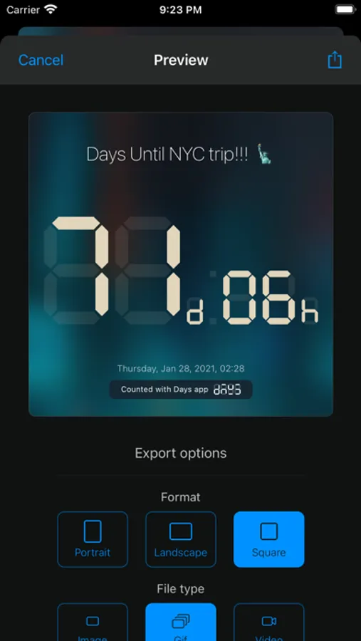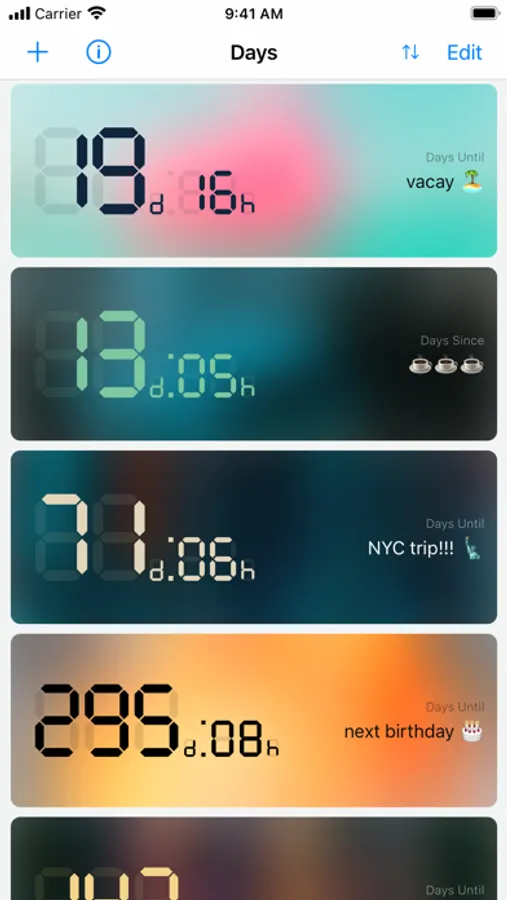 Need to keep track of time since or until an event? Easy, just tap start and you are good to go. Days will keep track of the days and hours for you.