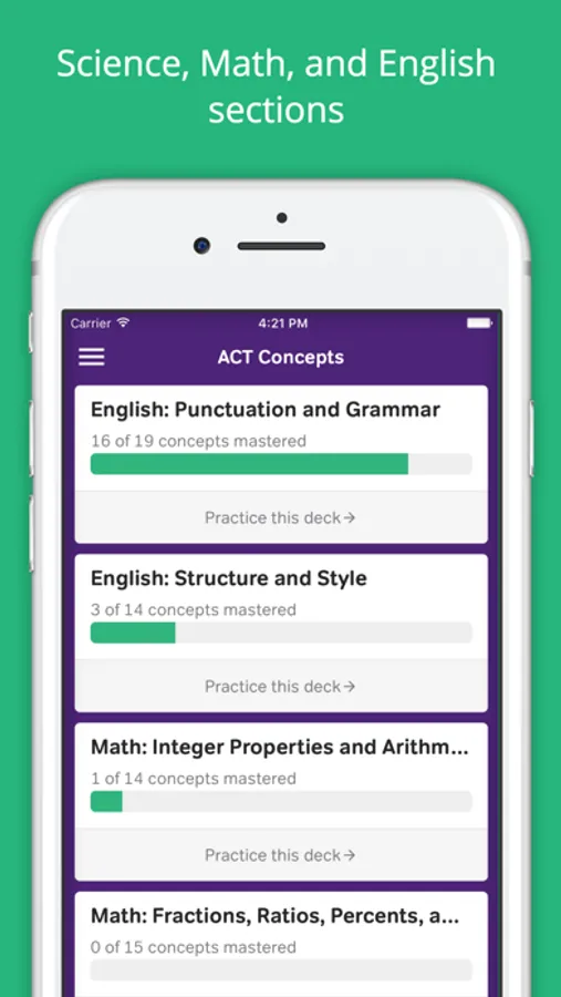 • Decks to help you prepare for the ACT Math, Science and English tests