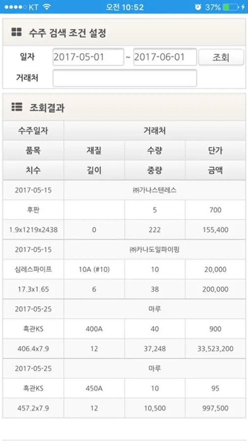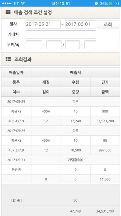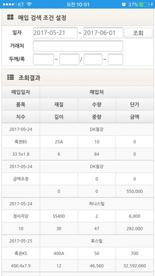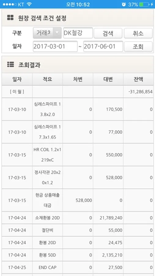스마트폰에서 로그인하여 철강마법사 ERP에 등록된 내역을 조회할수 있는 기능을 가진 어플리케이션입니다. 거래처,재고장, 매출, 매입, 견적, 수주, 원장의 내용을 조회할 수 있습니다. 매출 매입내역 등 각종 현황화면에서는 철강재의 두께 및 폭으로 조회가 가능하며, 거래처/거래일자별로 조회가 가능합니다.