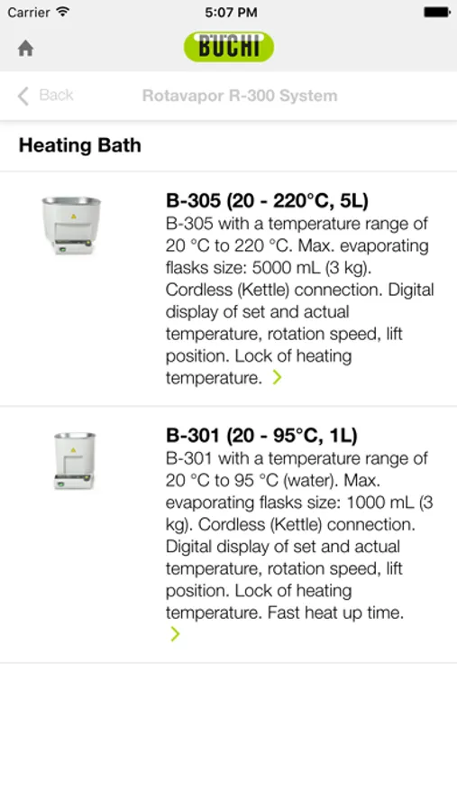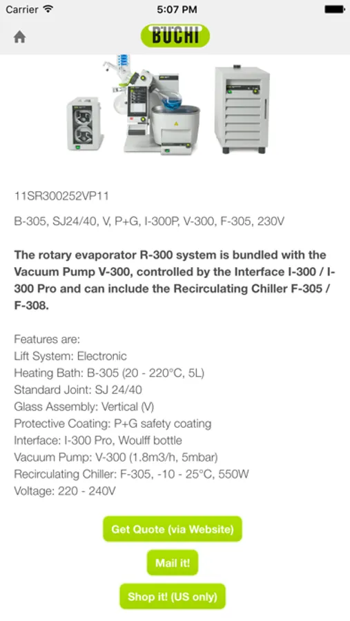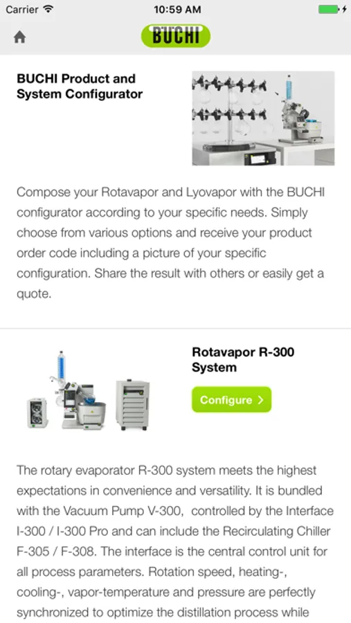 - Configurator for stand-alone products or complete systems guiding through the official BUCHI ordering matrix