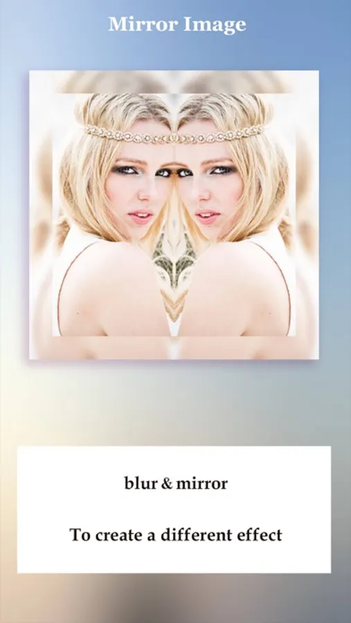 Mirror Image allows you to create the magic mirror effect with your photos .