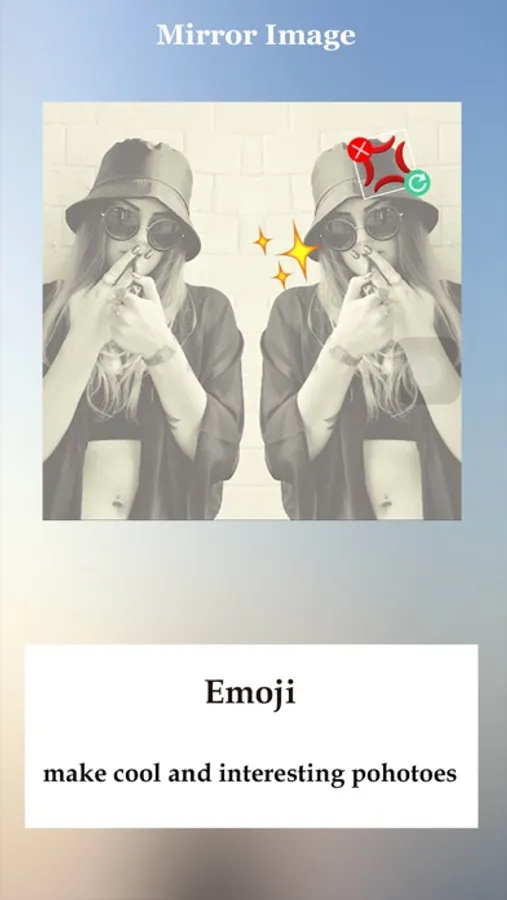 Are you want clone yourself ? Do you love mirror effect in photos? Mirror Image will be your best choose. There are many mirror effect for you and you can adjust them so easy . At the same time you can add filters / snap / stickers and so on .
