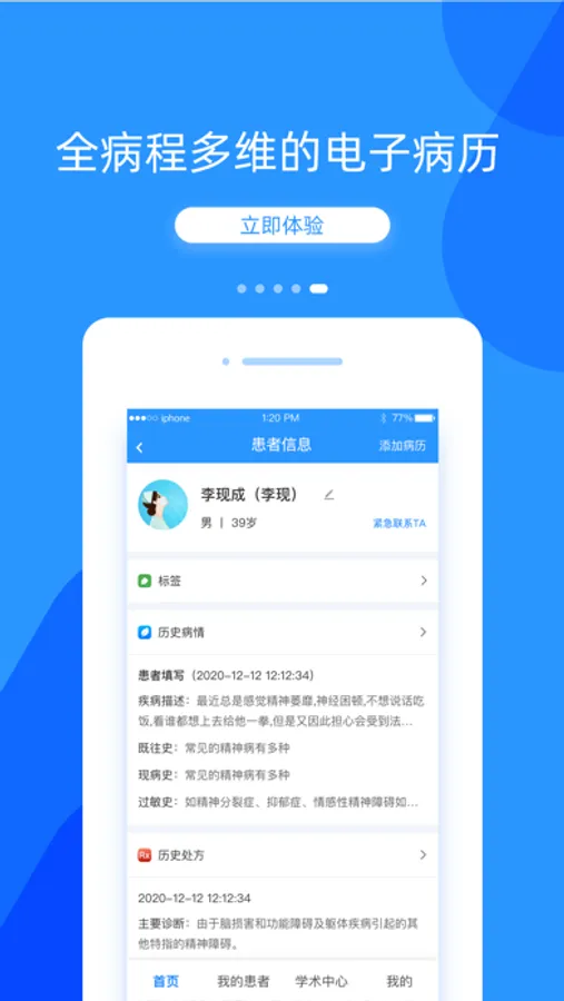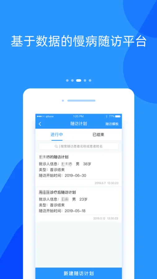 便捷的随访和管理患者,电子备份患者病历,方便医生快速、准确的记录、收集、管理和查找病历资料。