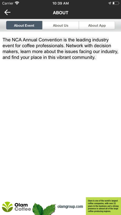 This TripBuilder EventMobile app is provided at no charge by the National Coffee Association (NCA). It was designed and developed by TripBuilder Media Inc. If you have any questions, or need any support regarding how to use this app, please submit a Support Ticket (located within the Help icon in the app).