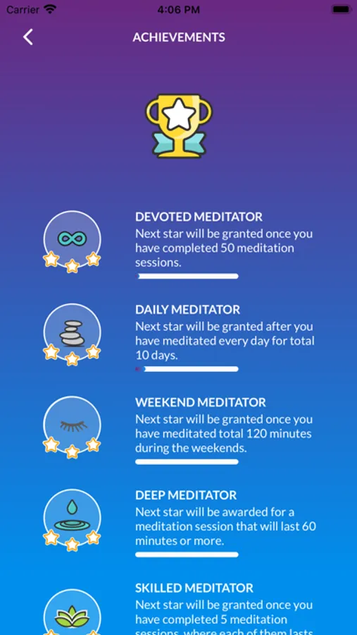 - Achievements and Badges to friendly boost your motivation to meditate