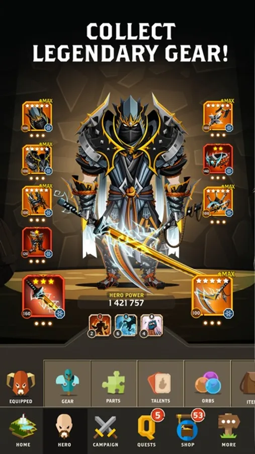 - Dynamic evolution - level up your hero, upgrade equipment, unlock talents and magic skills to boost your hero power!
