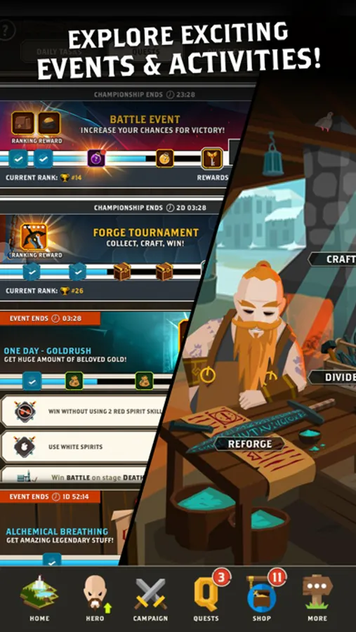 - Complete hundreds of special Quest Events and battle your way to climb the ranking!