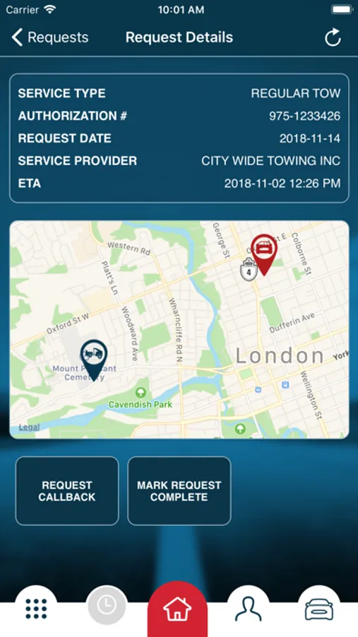 The real-time driven ETA, assigned Tow Provider, and status updates will be pushed directly to the device. Request a callback or let us know when the service is completed and you are safely on your way.- The app is there to provide peace of mind that help is on the way.