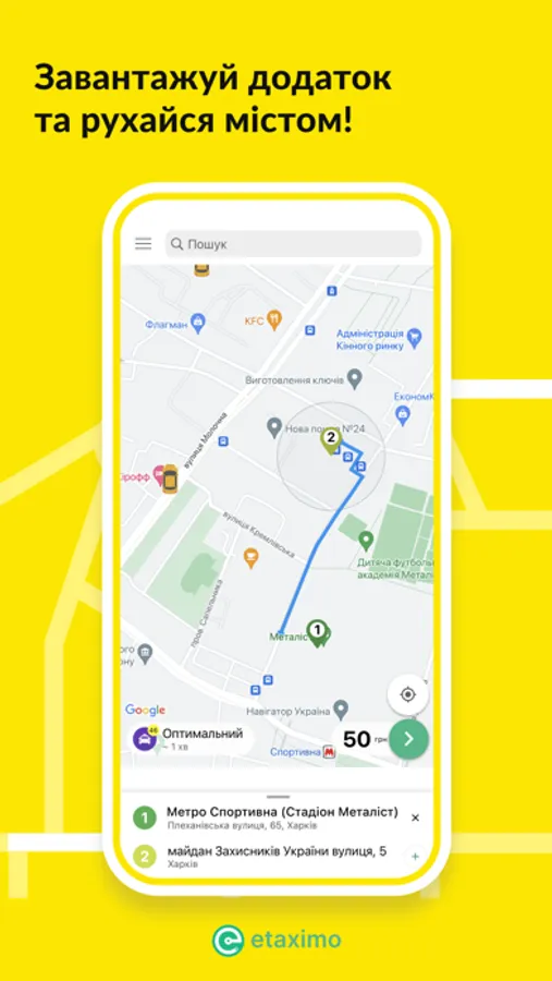 Etaximo lets you choose your taxi driver, take a ride and pay for it with your credit card or by cash.